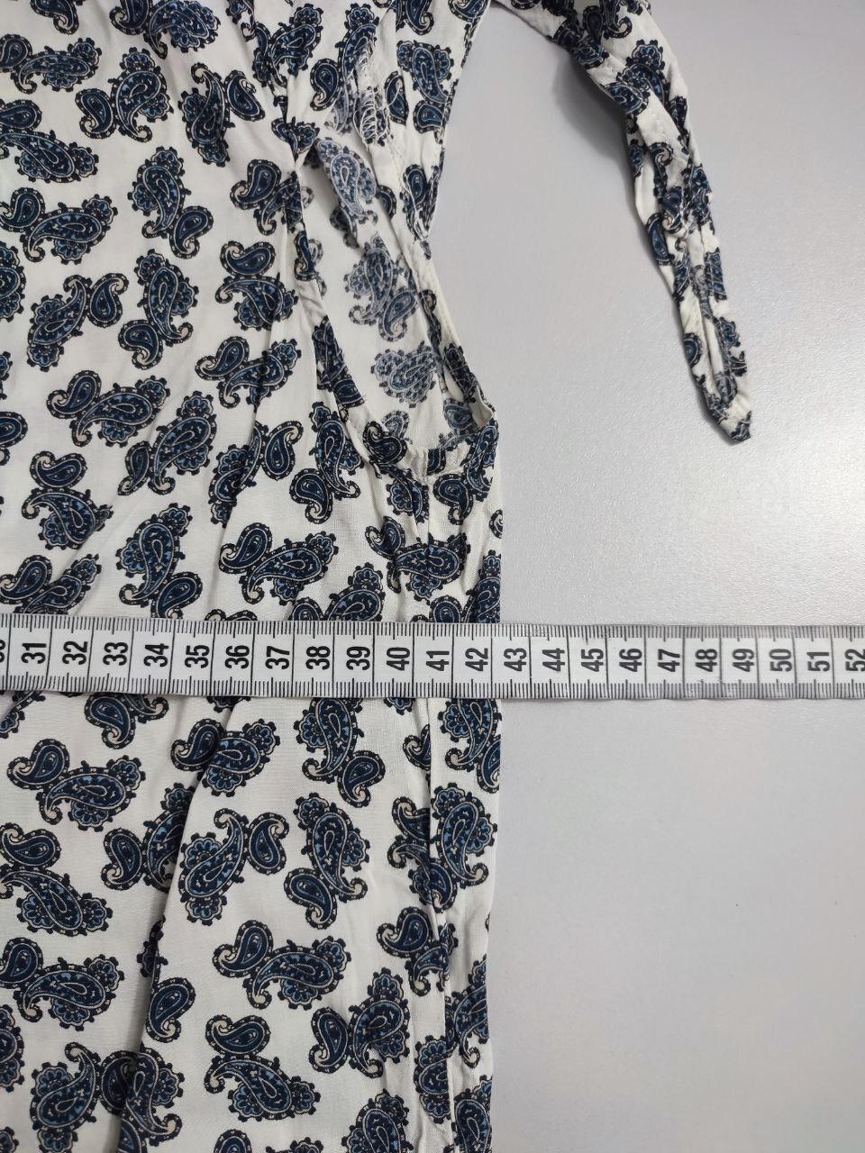 2. Маркировка: S, визуально 44 размер. Всегда ориентируйтесь по замерам. Чтобы не ошибиться с выбором размера - измеряйте похожие вещи. Листайте фото с замерами вправо.
