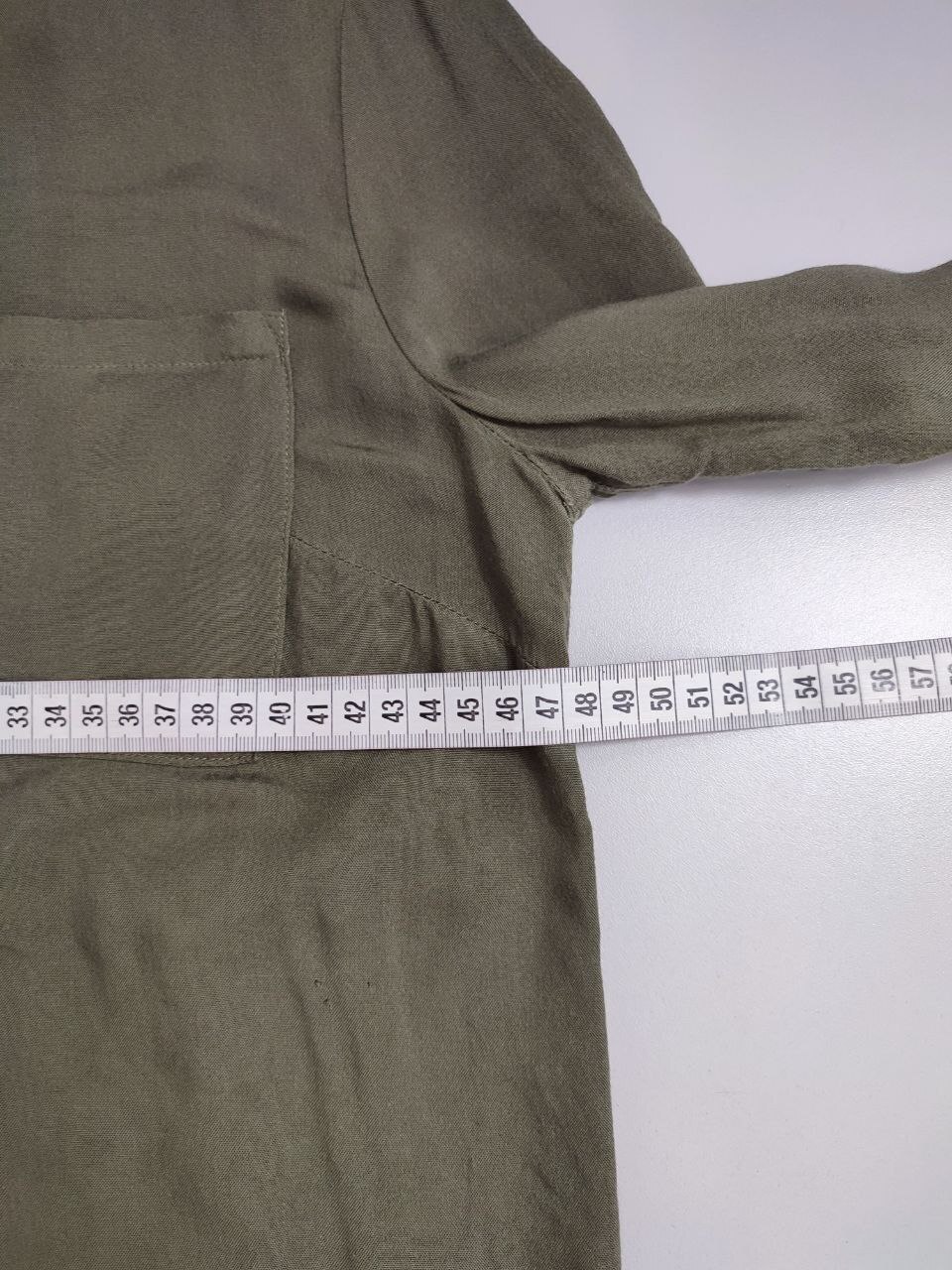 2. Маркировка: 36, визуально 40 размер. Всегда ориентируйтесь по замерам. Чтобы не ошибиться с выбором размера - измеряйте похожие вещи. Листайте фото с замерами вправо.