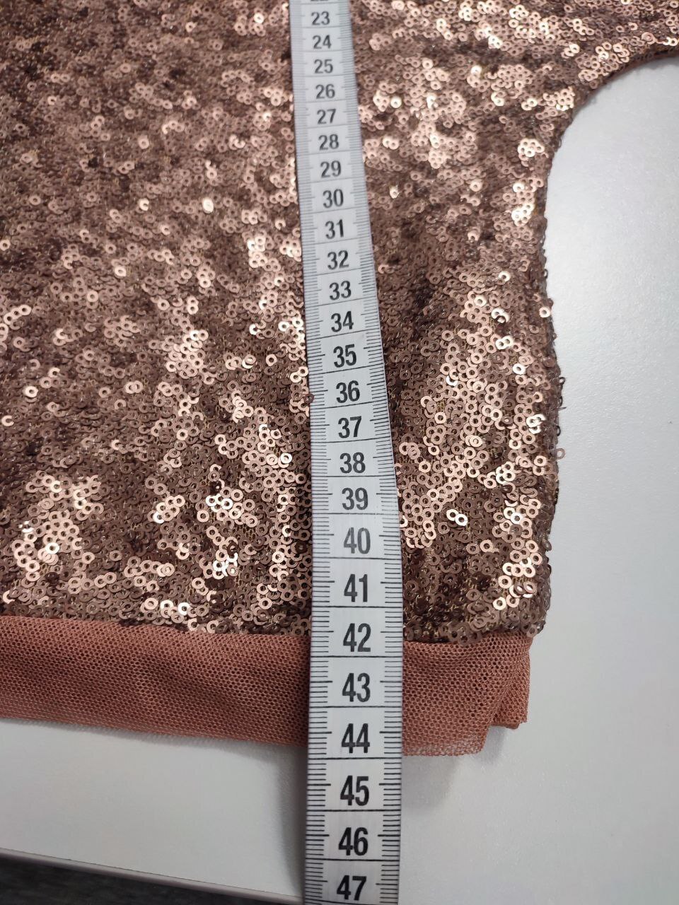 2. Маркировка: S, визуально 44 размер. Всегда ориентируйтесь по замерам. Чтобы не ошибиться с выбором размера - измеряйте похожие вещи. Листайте фото с замерами вправо.