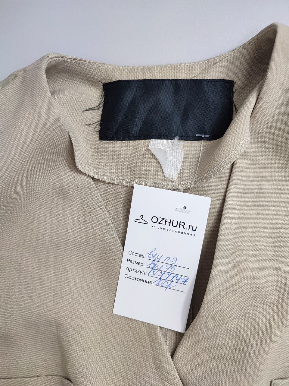 2. Маркировка: визуально 46 размер, всегда ориентируйтесь по замерам, чтобы не ошибиться с выбором размера измеряйте похожие вещи. Листайте фото с замерами вправо.