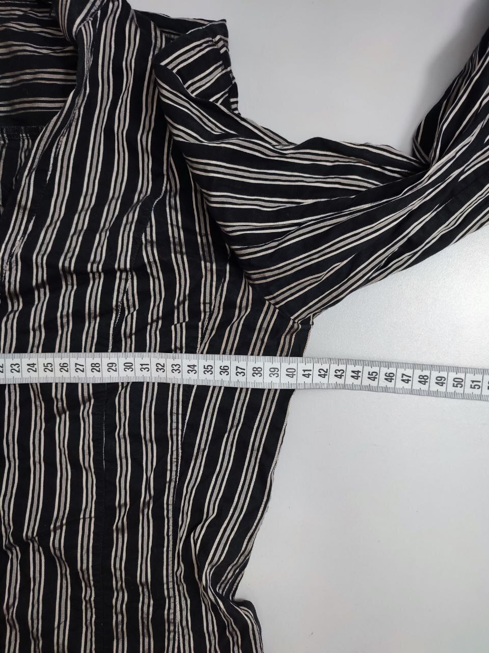 2. Маркировка: М, визуально 46 размер. Всегда ориентируйтесь по замерам. Чтобы не ошибиться с выбором размера - измеряйте похожие вещи. Листайте фото с замерами вправо.