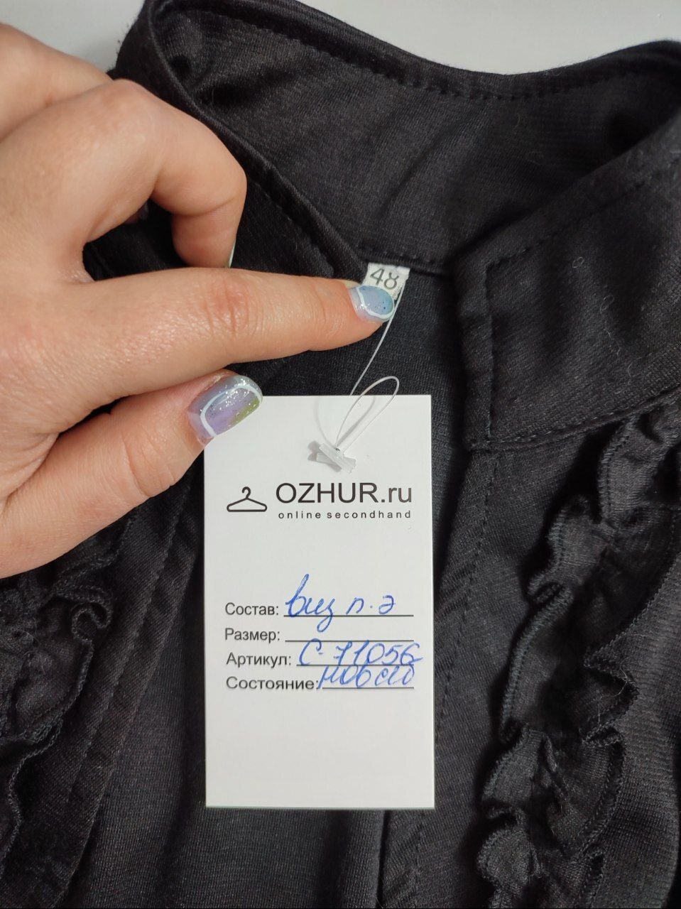 2. Маркировка: 48 размер. Всегда ориентируйтесь по замерам. Чтобы не ошибиться с выбором размера - измеряйте похожие вещи. Листайте фото с замерами вправо.