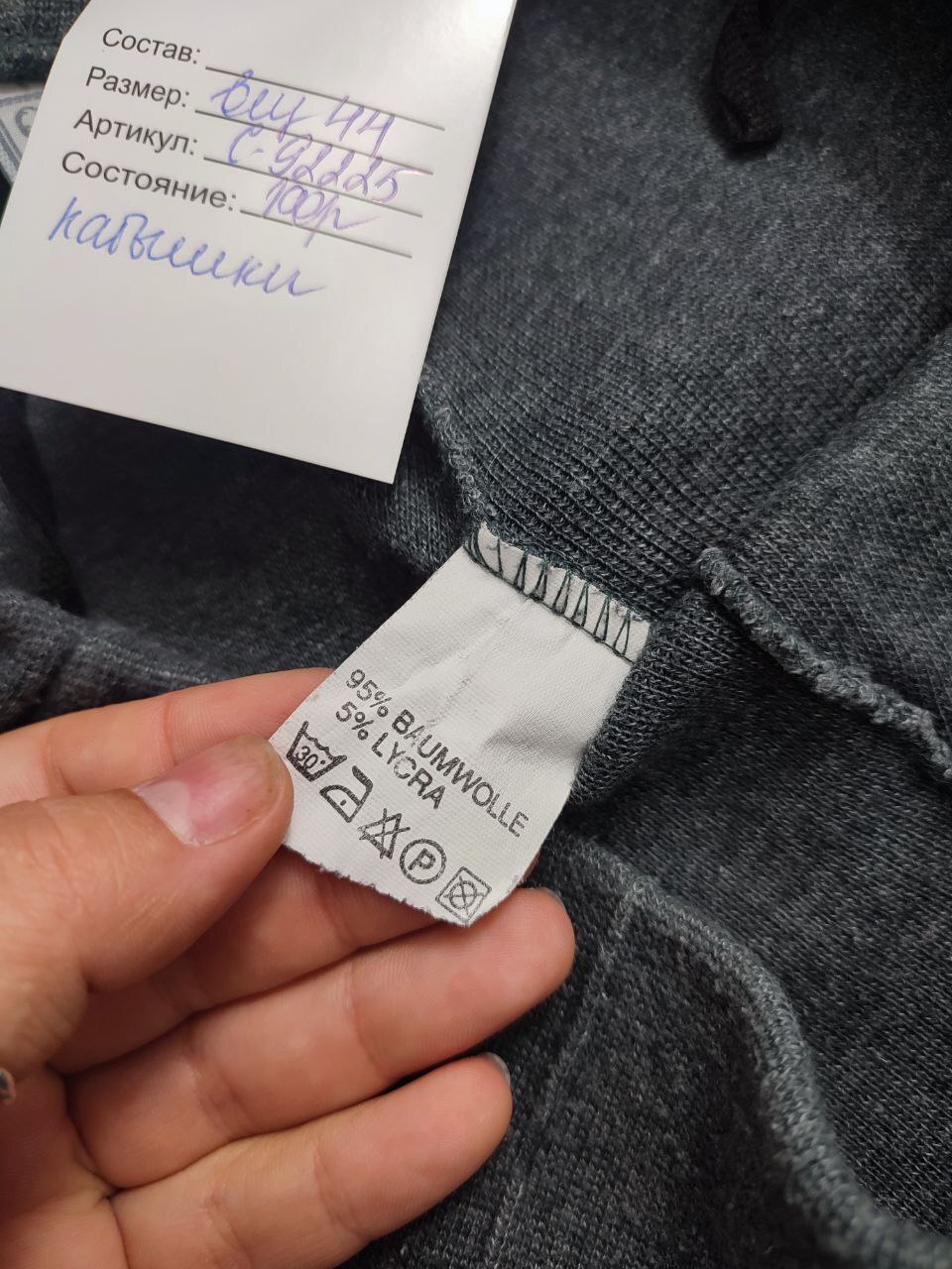 2. Маркировка: визуально 44 размер, всегда ориентируйтесь по замерам, чтобы не ошибиться с выбором размера измеряйте похожие вещи. Листайте фото с замерами вправо.