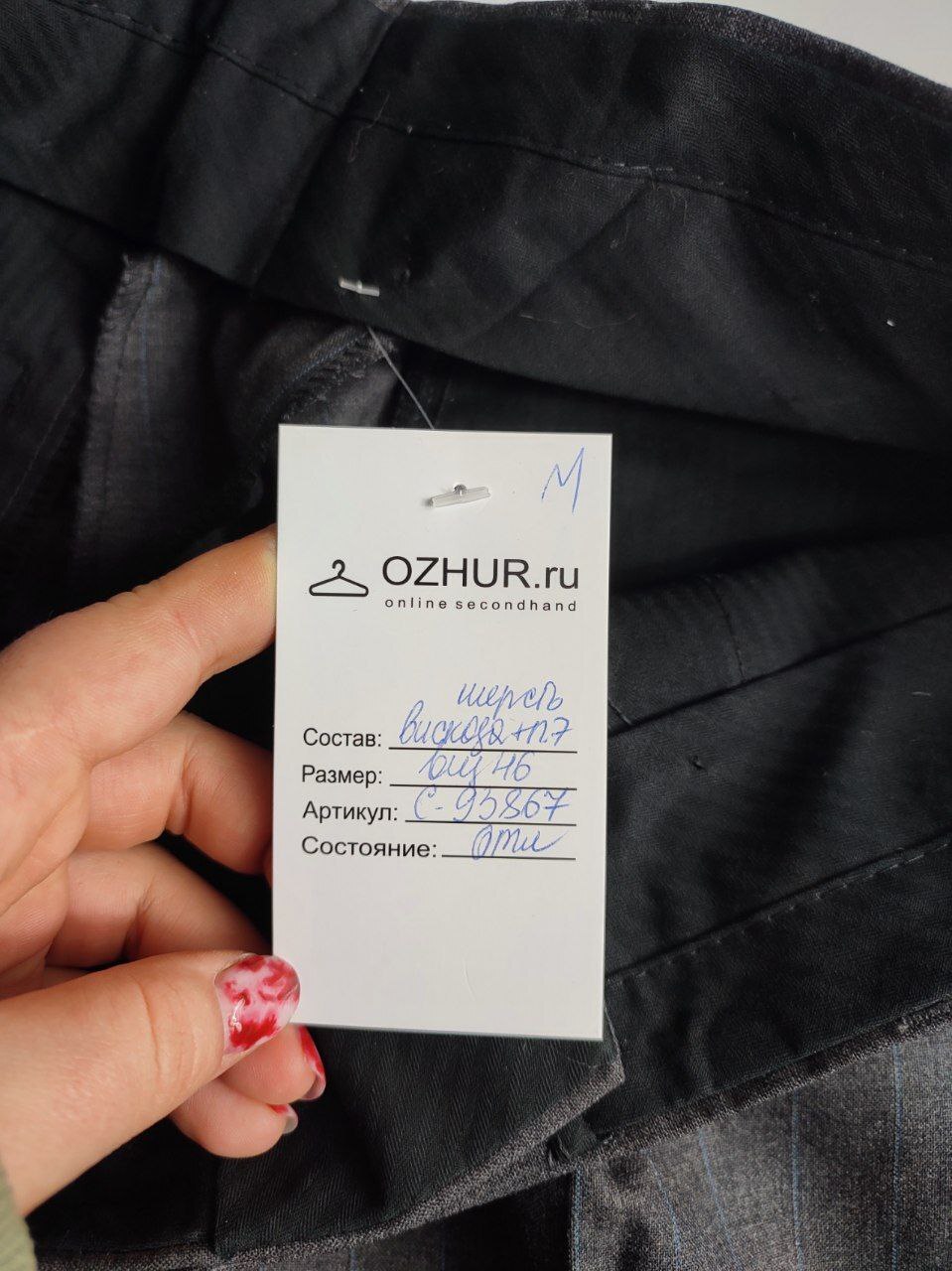 2. Маркировка: визуально 46 размер. Всегда ориентируйтесь по замерам. Чтобы не ошибиться с выбором размера - измеряйте похожие вещи. Листайте фото с замерами вправо.
