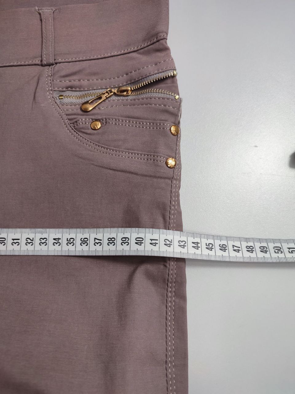 2. Маркировка: 31, визуально 46 размер. Всегда ориентируйтесь по замерам. Чтобы не ошибиться с выбором размера - измеряйте похожие вещи. Листайте фото с замерами вправо.