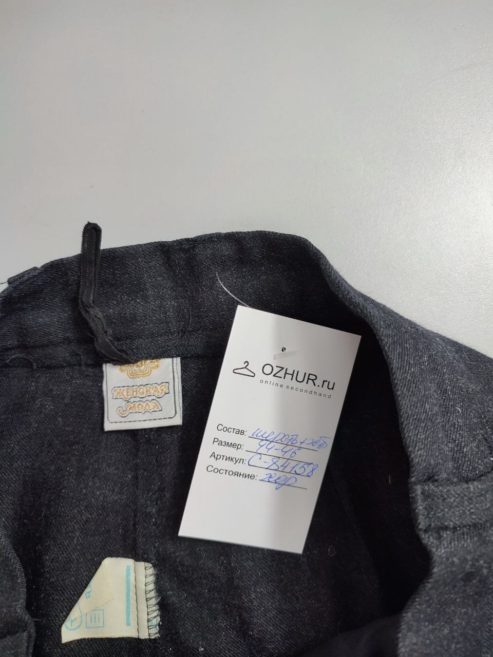 2. Маркировка: визуально 44-46 размер. Всегда ориентируйтесь по замерам. Чтобы не ошибиться с выбором размера - измеряйте похожие вещи. Листайте фото с замерами вправо.