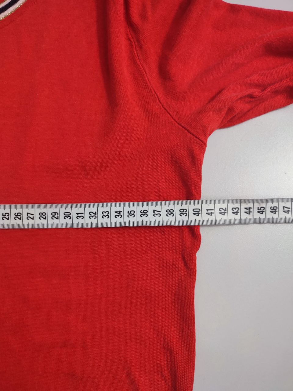 2. Маркировка: S, визуально 46 размер. Всегда ориентируйтесь по замерам. Чтобы не ошибиться с выбором размера - измеряйте похожие вещи. Листайте фото с замерами вправо.