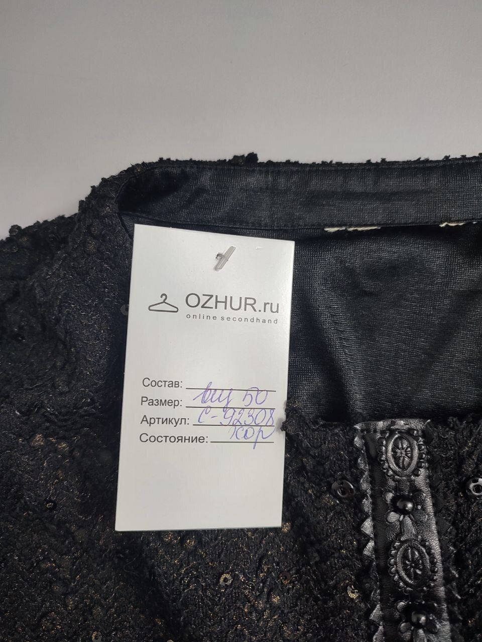 2. Маркировка: визуально 50 размер. Всегда ориентируйтесь по замерам. Чтобы не ошибиться с выбором размера - измеряйте похожие вещи. Листайте фото с замерами вправо.