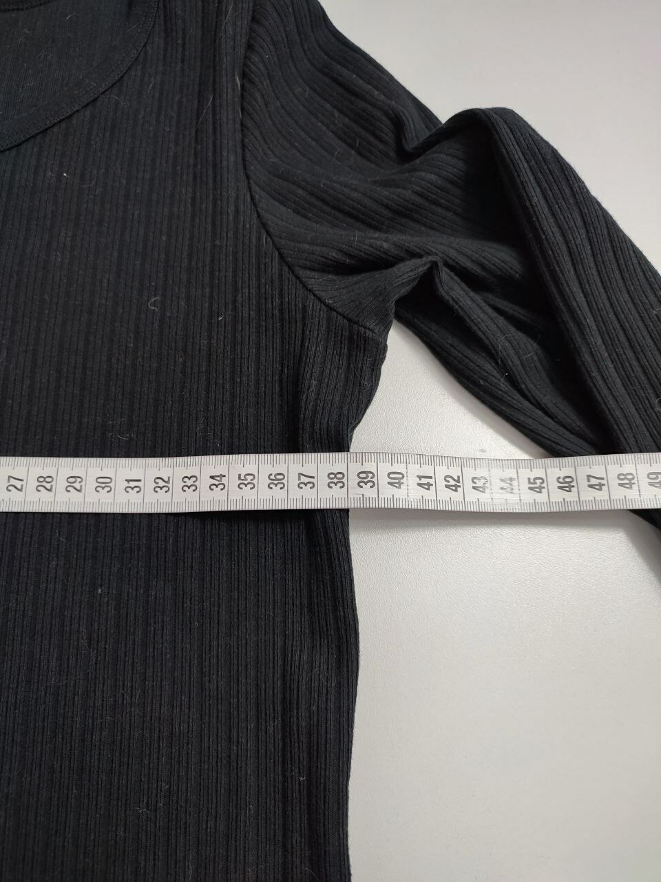 2. Маркировка: S, визуально 44 размер. Всегда ориентируйтесь по замерам. Чтобы не ошибиться с выбором размера - измеряйте похожие вещи. Листайте фото с замерами вправо.