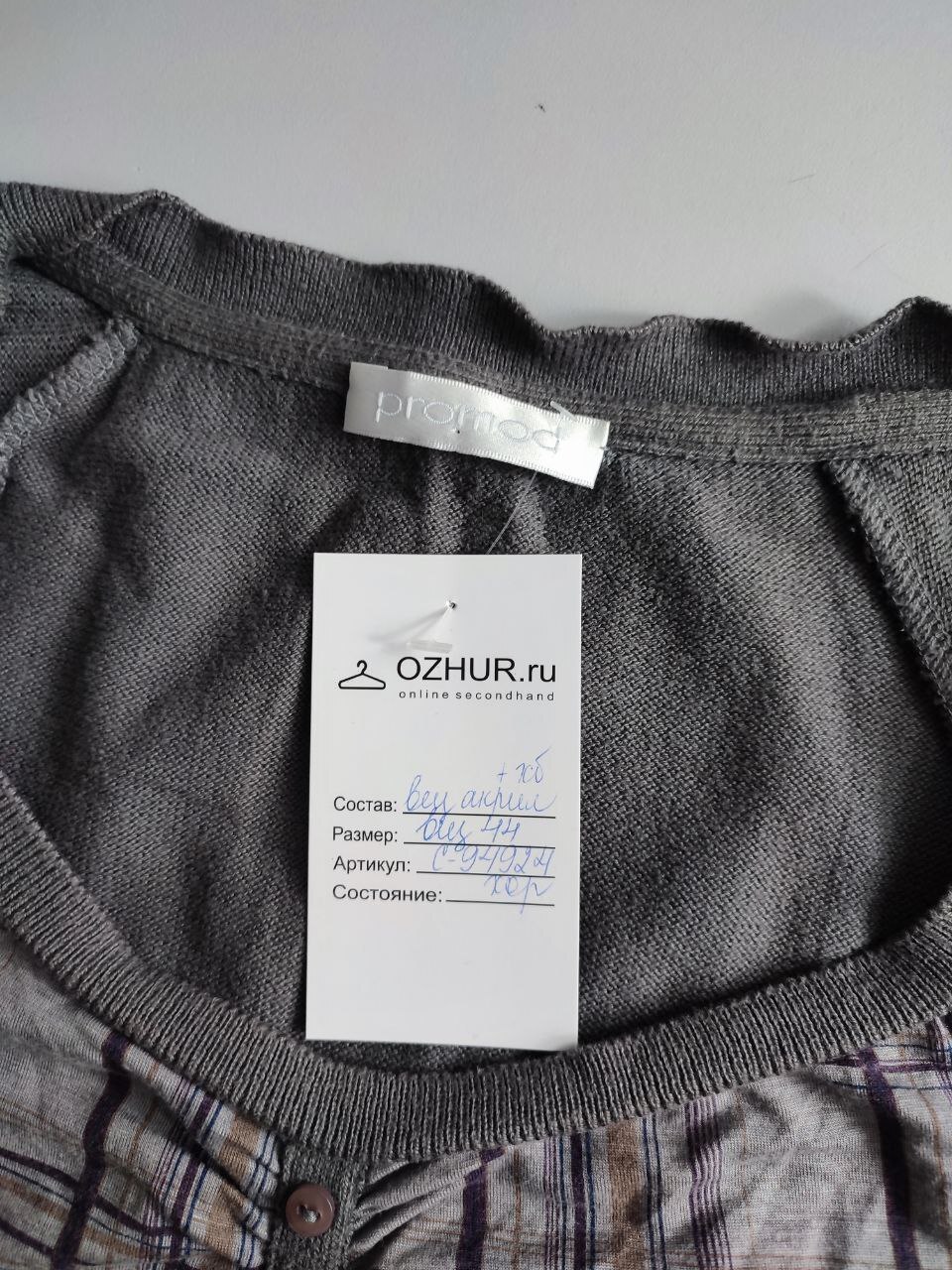 2. Маркировка: визуально 44 размер, всегда ориентируйтесь по замерам, чтобы не ошибиться с выбором размера измеряйте похожие вещи. Листайте фото с замерами вправо.