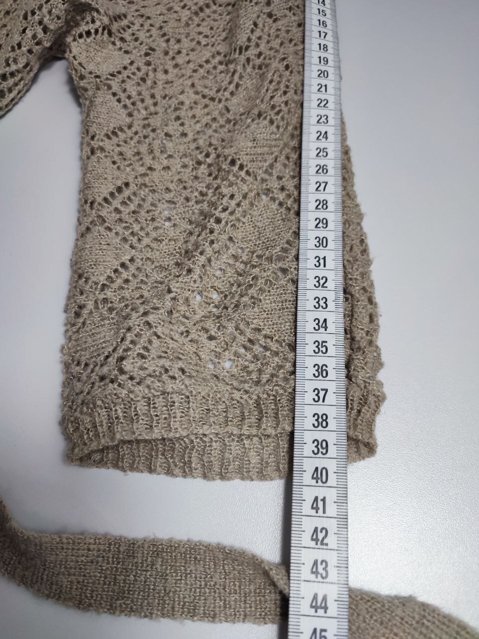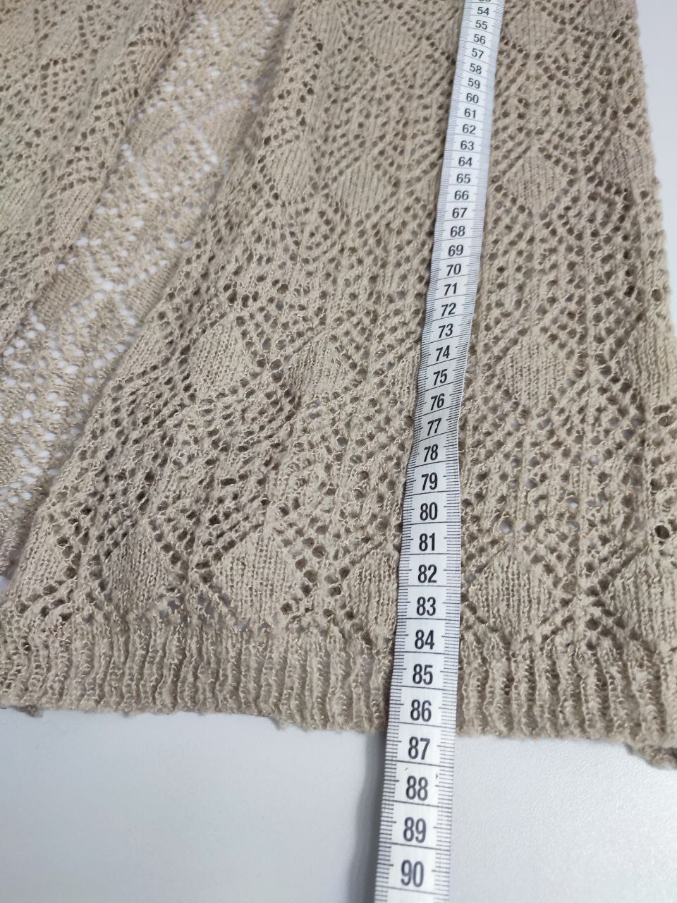 2. Маркировка: 38, визуально 44 размер, всегда ориентируйтесь по замерам, чтобы не ошибиться с выбором размера измеряйте похожие вещи. Листайте фото с замерами вправо.