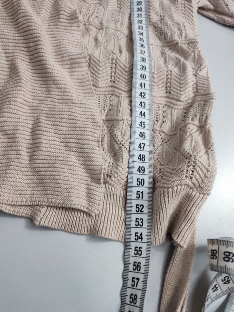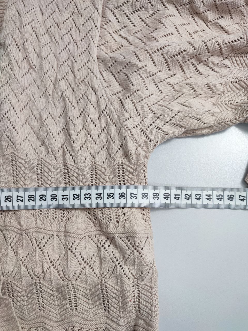 2. Маркировка: М, визуально 46 размер. Всегда ориентируйтесь по замерам. Чтобы не ошибиться с выбором размера - измеряйте похожие вещи. Листайте фото с замерами вправо.