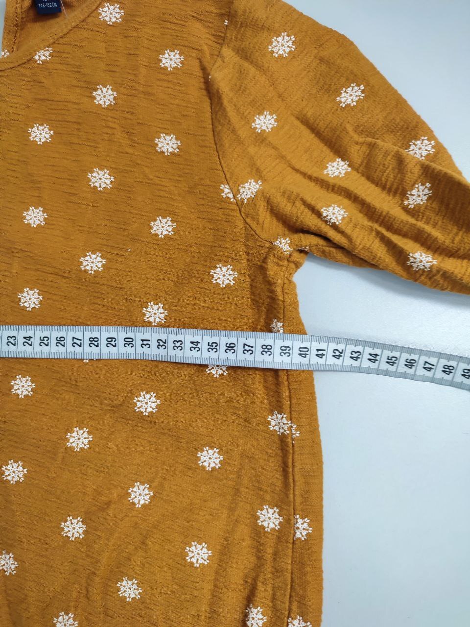 2. Маркировка: визуально 146/152 см, всегда ориентируйтесь по замерам, чтобы не ошибиться с выбором размера измеряйте похожие вещи. Листайте фото с замерами вправо.