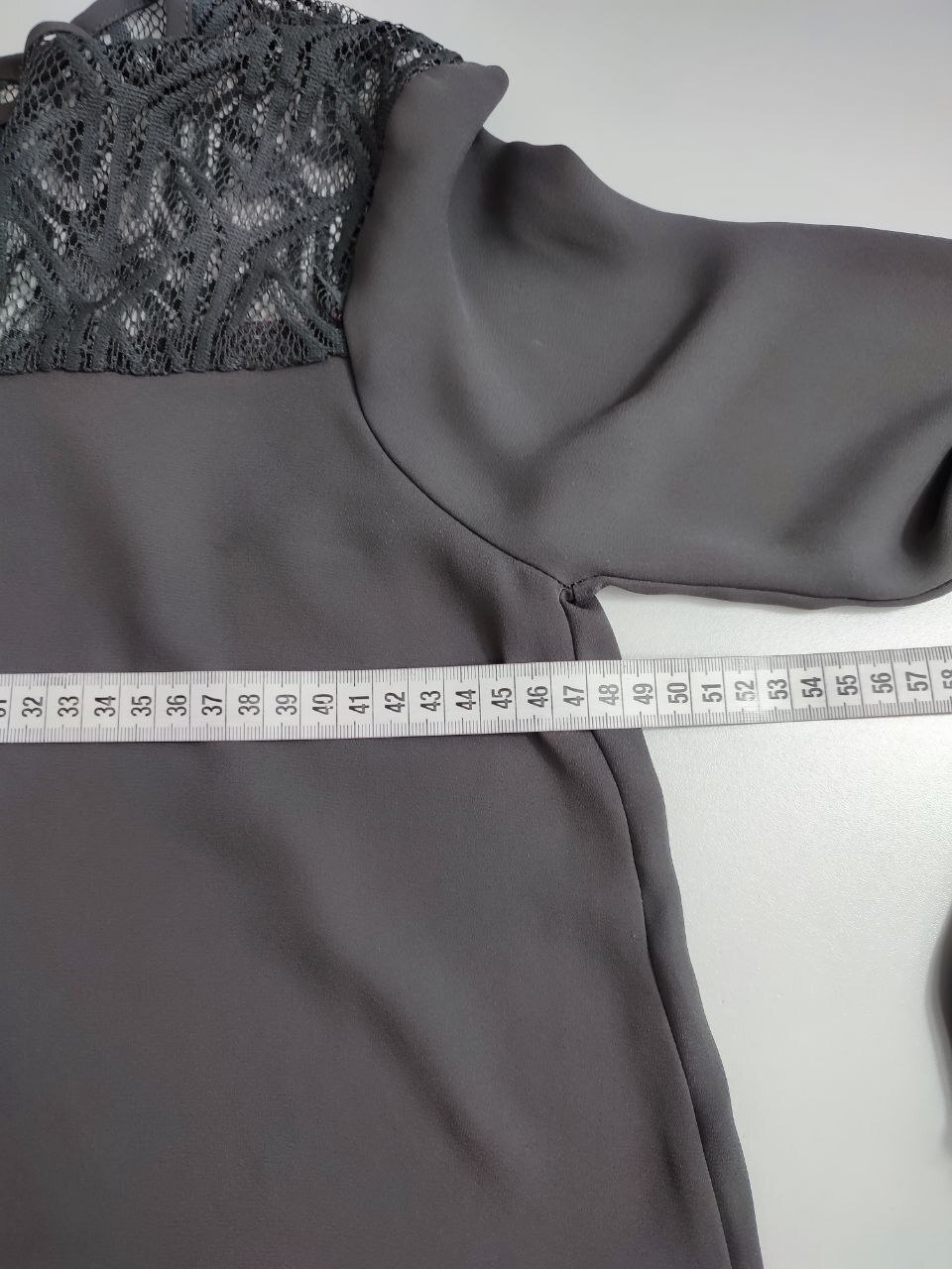 2. Маркировка: визуально 44 размер. Всегда ориентируйтесь по замерам. Чтобы не ошибиться с выбором размера - измеряйте похожие вещи. Листайте фото с замерами вправо.