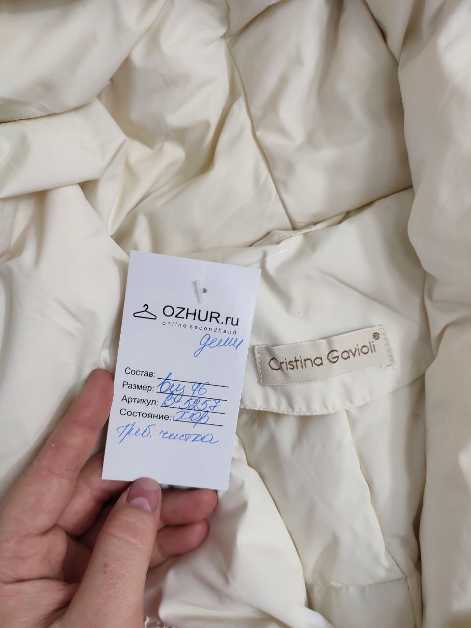 2. Маркировка: визуально 46 размер. Всегда ориентируйтесь по замерам. Чтобы не ошибиться с выбором размера - измеряйте похожие вещи. Листайте фото с замерами вправо.