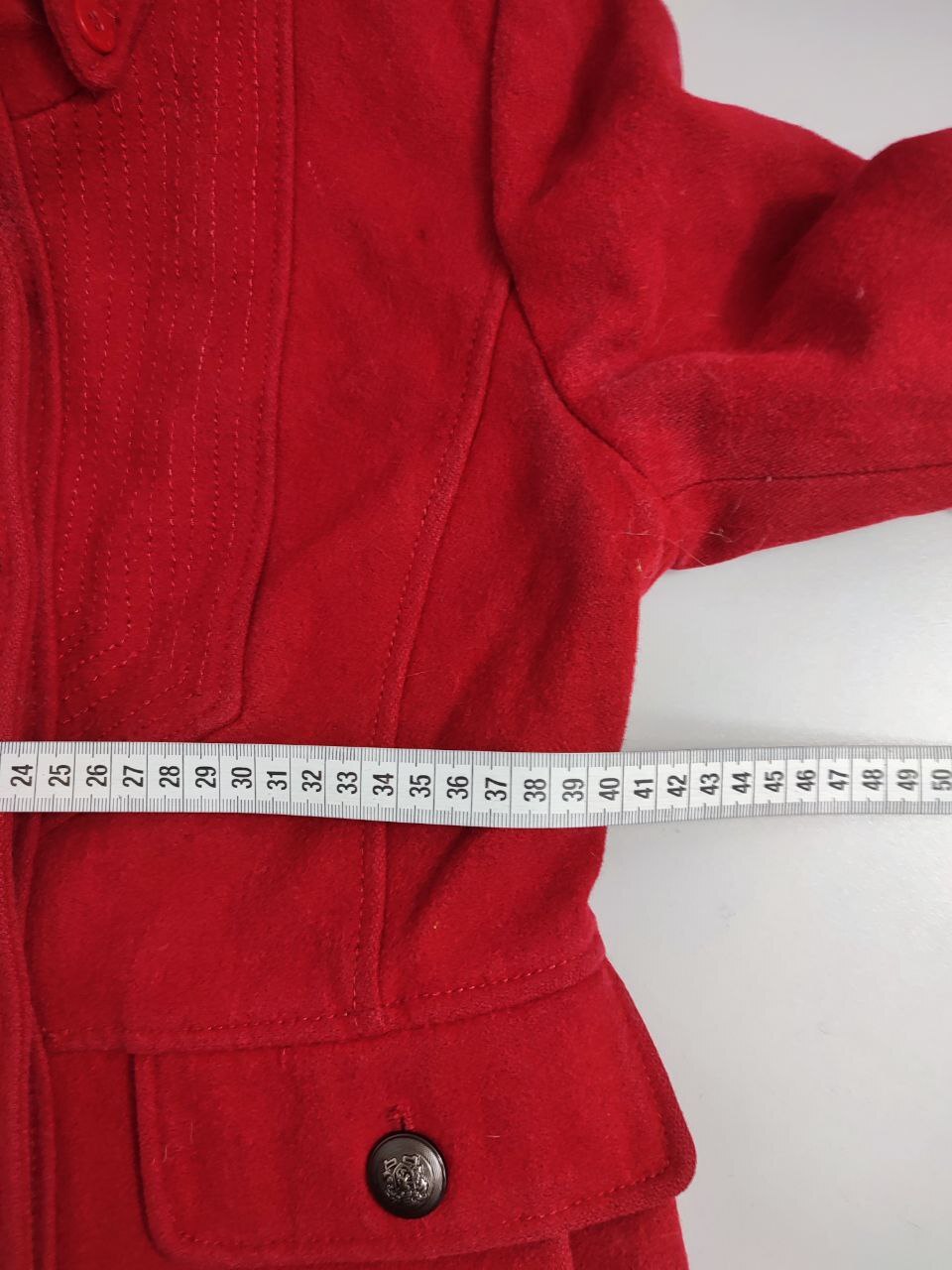 2. Маркировка: визуально 42|44 размер, всегда ориентируйтесь по замерам, чтобы не ошибиться с выбором размера измеряйте похожие вещи. Листайте фото с замерами вправо.