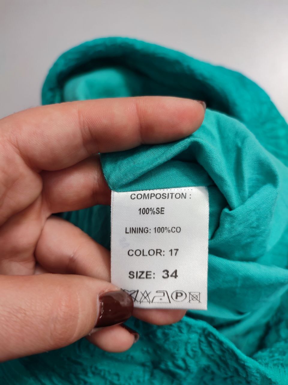 2. Маркировка: 34, визуально 40 размер. Всегда ориентируйтесь по замерам. Чтобы не ошибиться с выбором размера - измеряйте похожие вещи. Листайте фото с замерами вправо.