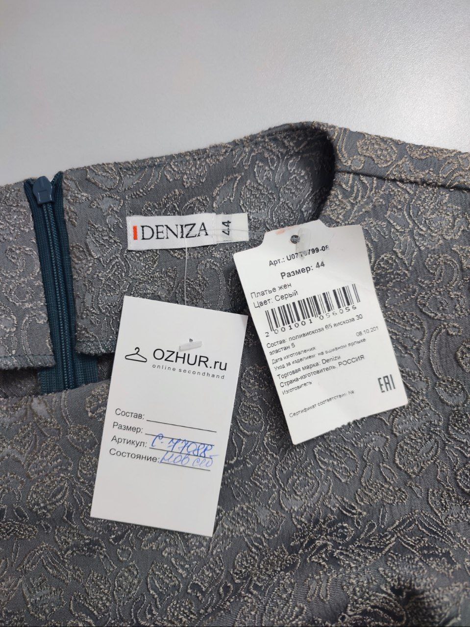 2. Маркировка: 44 размер. Всегда ориентируйтесь по замерам. Чтобы не ошибиться с выбором размера - измеряйте похожие вещи. Листайте фото с замерами вправо.