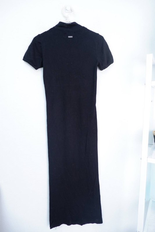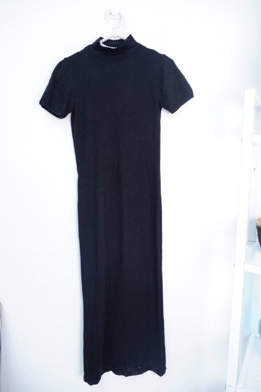 4. Описание: Платье длинное прямого кроя с коротким рукавом. Изделие в черном цвете без дополнительных элементов.