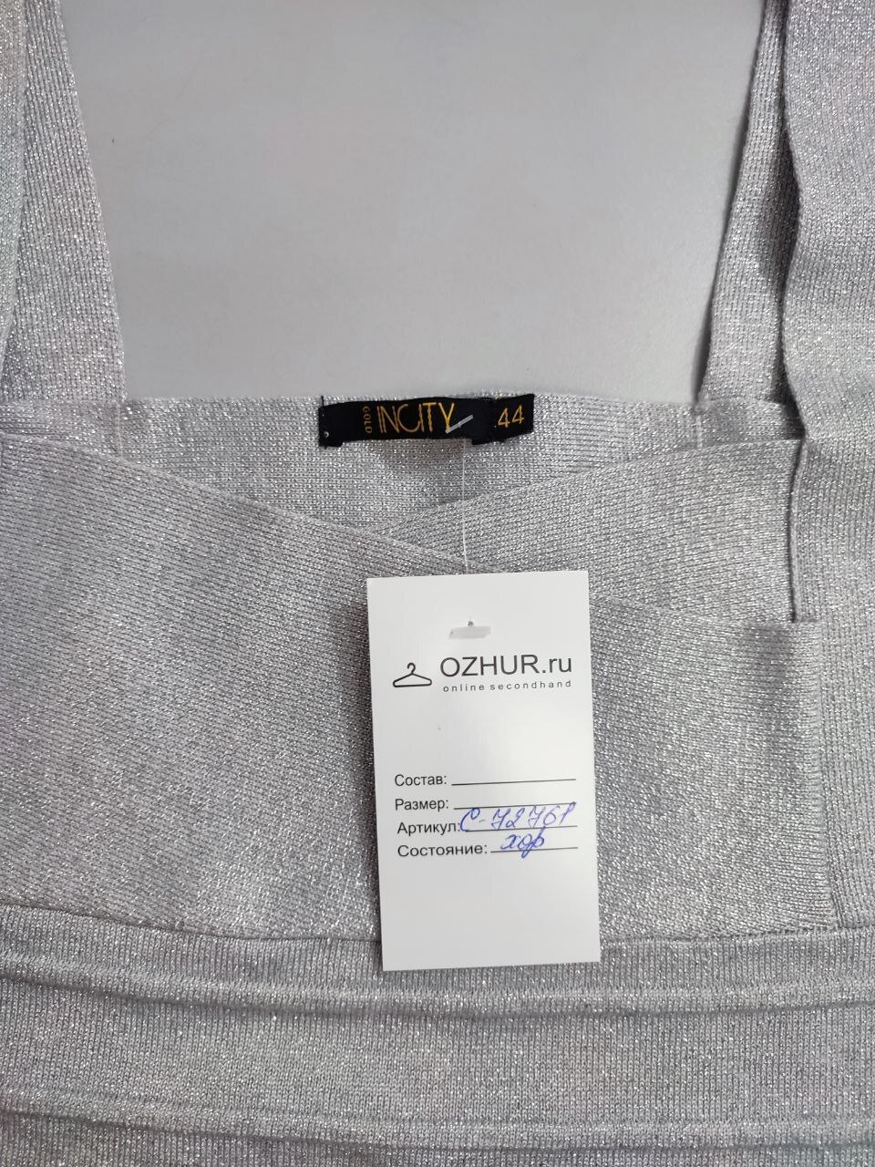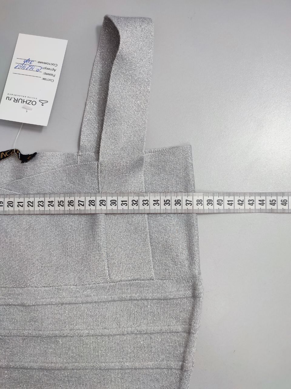 2. Маркировка: визуально 44 размер, всегда ориентируйтесь по замерам, чтобы не ошибиться с выбором размера измеряйте похожие вещи. Листайте фото с замерами вправо.