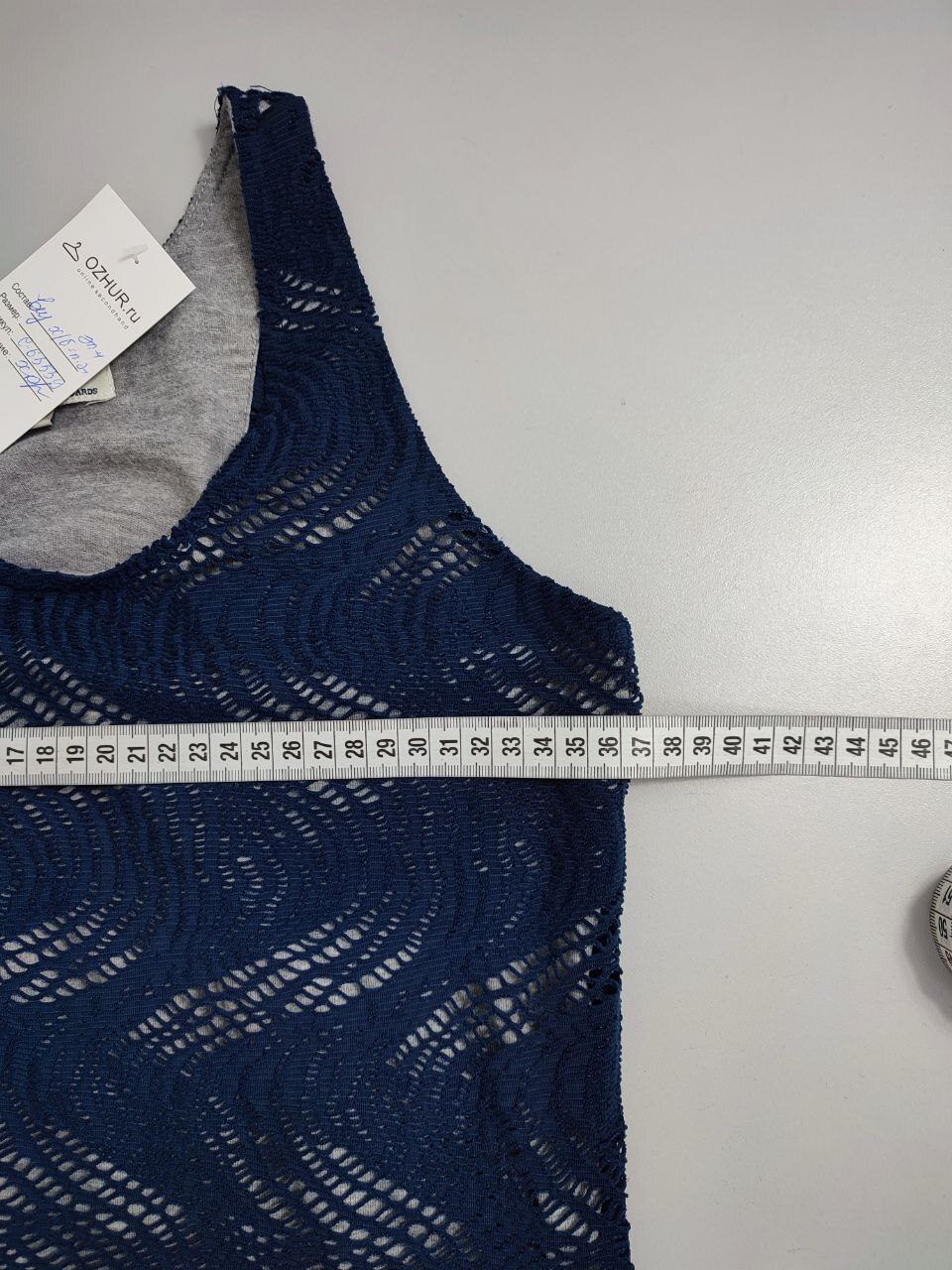 2. Маркировка: визуально 42/44 размер, всегда ориентируйтесь по замерам, чтобы не ошибиться с выбором размера измеряйте похожие вещи. Листайте фото с замерами вправо.