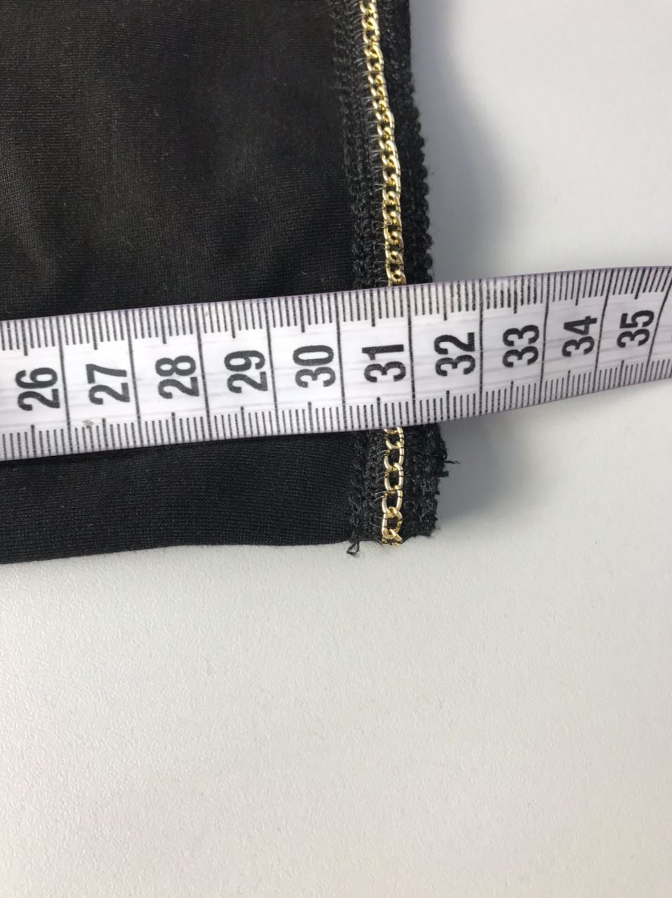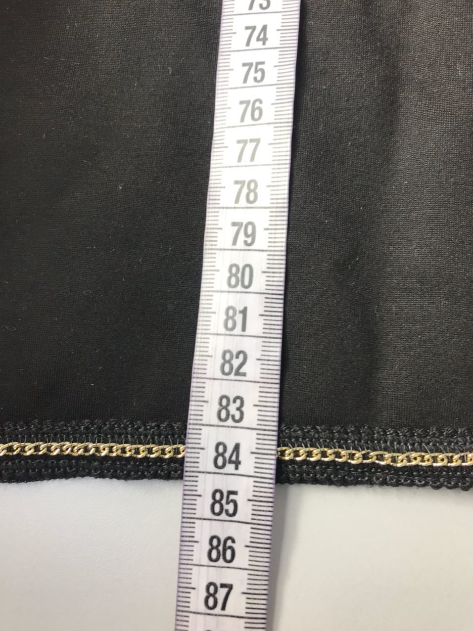 Чёрное платье с кантом-цепочкой из ткани джерси. Листайте фото с замерами вправо.