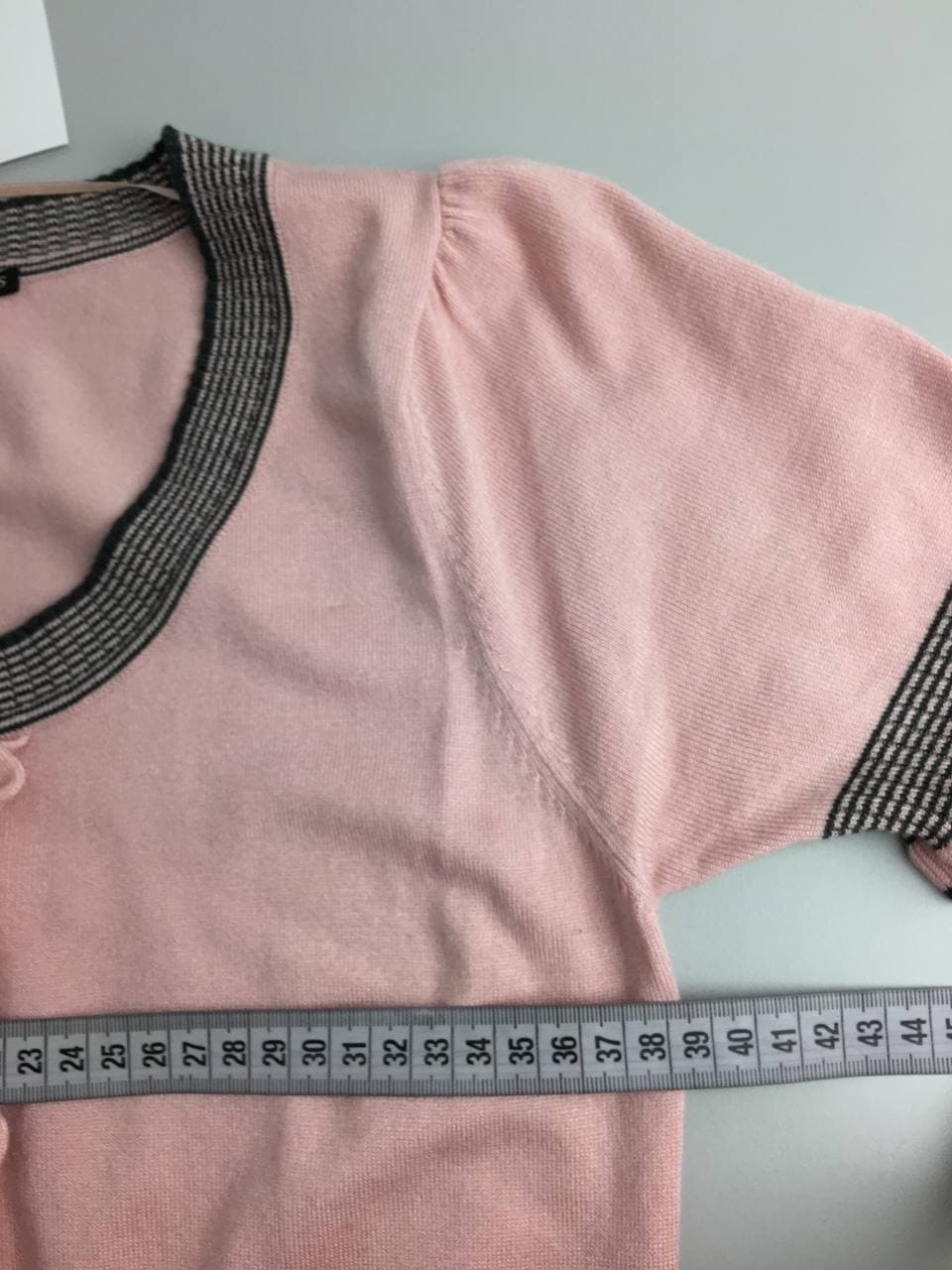 2. Маркировка: S, визуально 44 размер. Всегда ориентируйтесь по замерам. Чтобы не ошибиться с выбором размера - измеряйте похожие вещи. Листайте фото с замерами вправо.