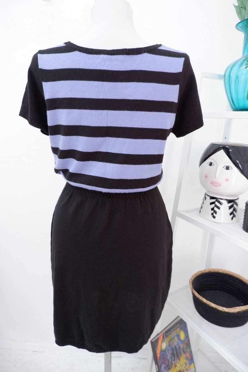 4. Описание: Платье облегающего фасона с полосками на груди.