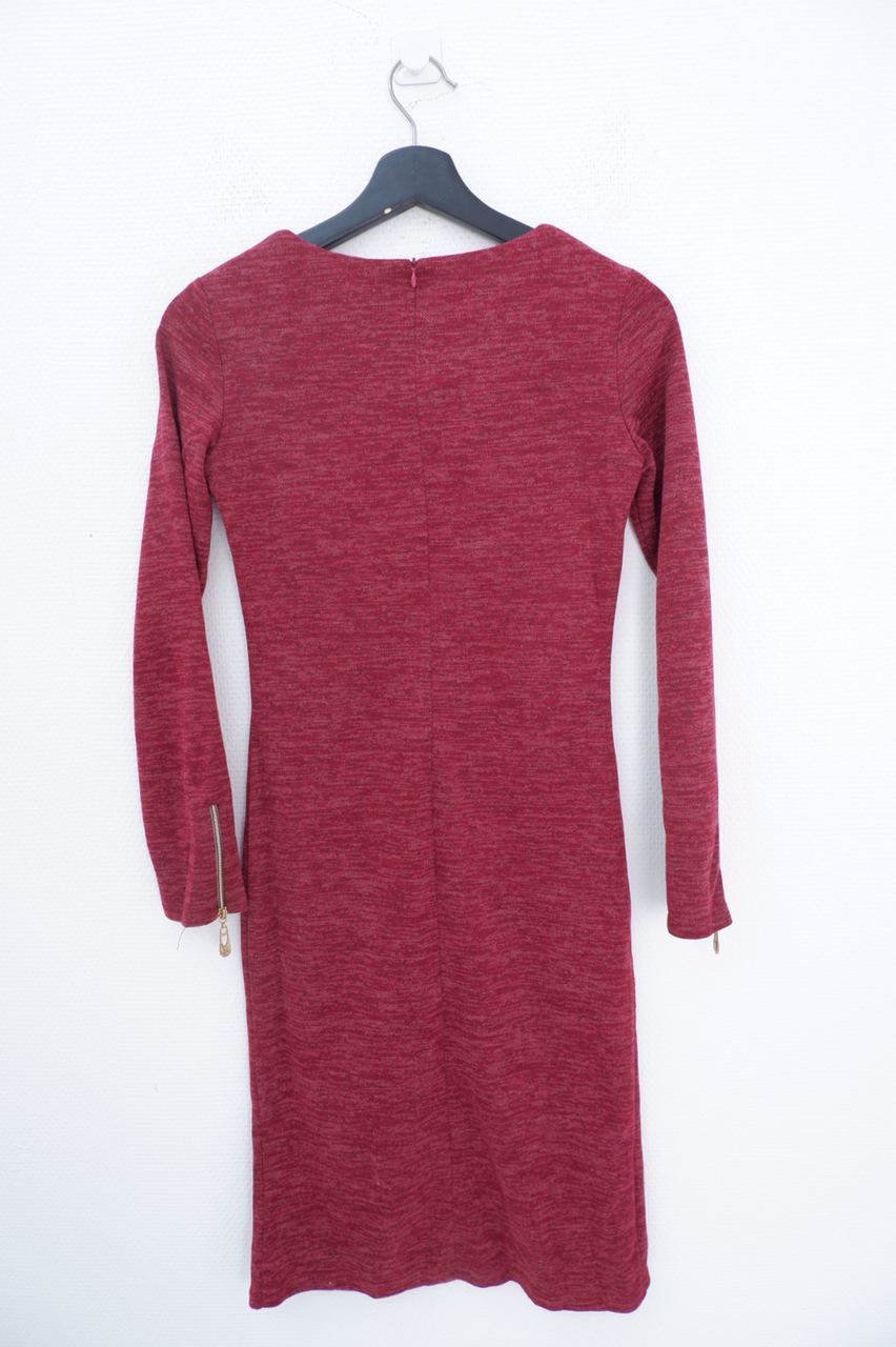 4. Описание: Платье из искусственного материала с длинным рукавом и молнией сзади дополнено декоративными золотистыми молниями.