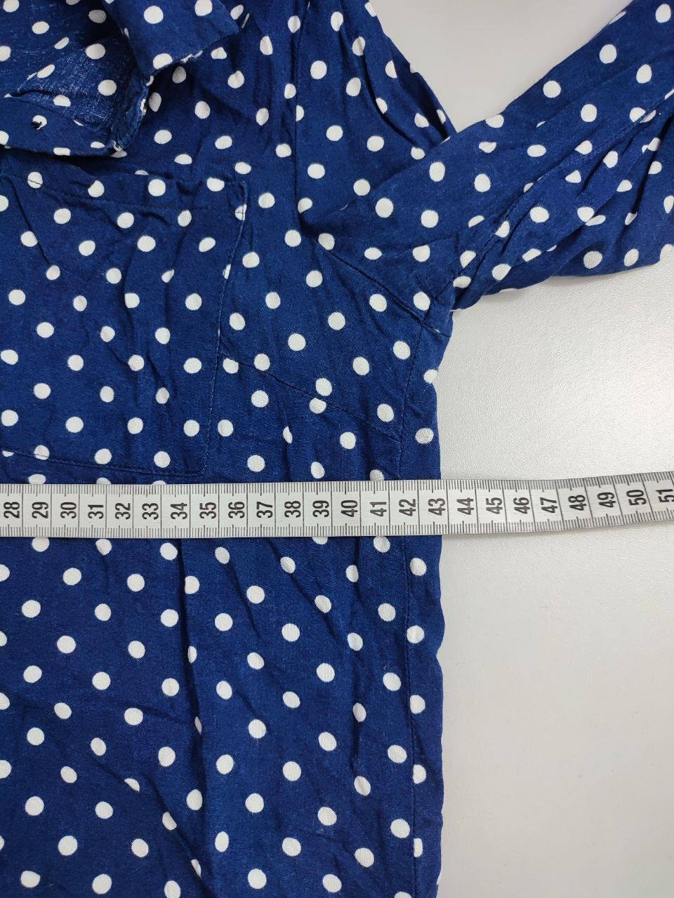 2. Маркировка: 32, визуально 38 размер. Всегда ориентируйтесь по замерам. Чтобы не ошибиться с выбором размера - измеряйте похожие вещи. Листайте фото с замерами вправо.