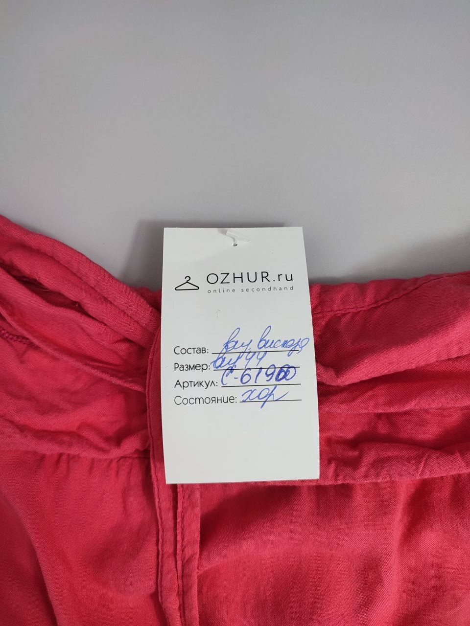 2. Маркировка: визуально 44 размер. Всегда ориентируйтесь по замерам. Чтобы не ошибиться с выбором размера - измеряйте похожие вещи. Листайте фото с замерами вправо.