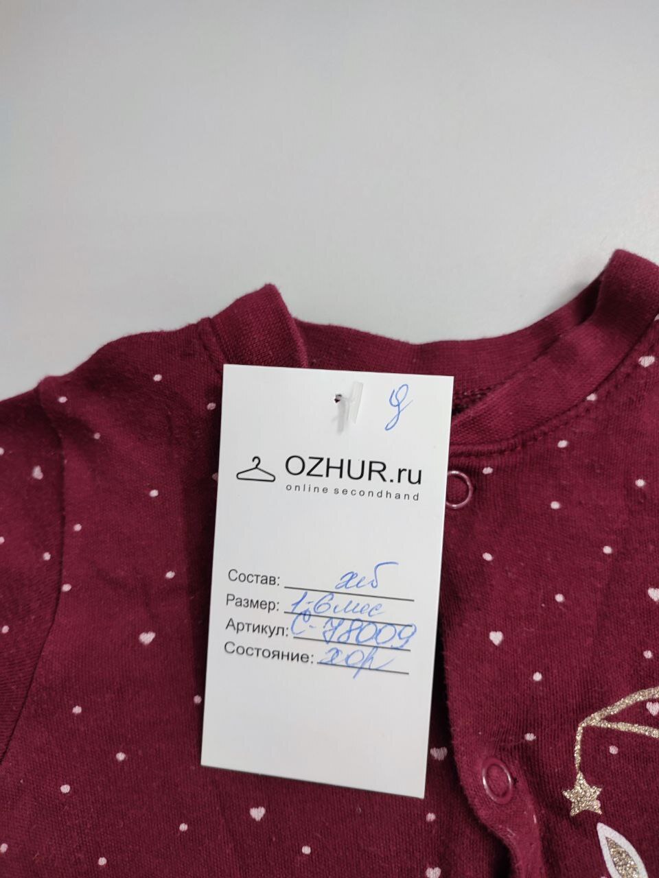2. Маркировка: визуально 56/62 см, всегда ориентируйтесь по замерам, чтобы не ошибиться с выбором размера измеряйте похожие вещи. Листайте фото с замерами вправо.