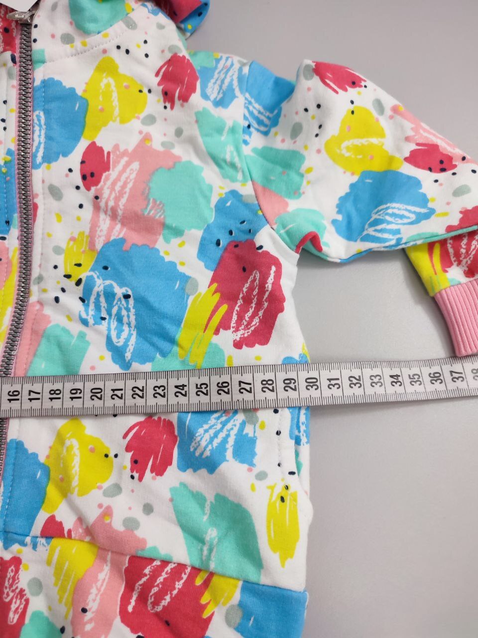 2. Маркировка: визуально 80 см, всегда ориентируйтесь по замерам, чтобы не ошибиться с выбором размера измеряйте похожие вещи. Листайте фото с замерами вправо.