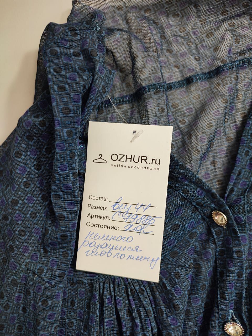 2. Маркировка: визуально 44 размер, всегда ориентируйтесь по замерам. Чтобы не ошибиться с выбором размера - измеряйте похожие вещи. Листайте фото с замерами вправо.