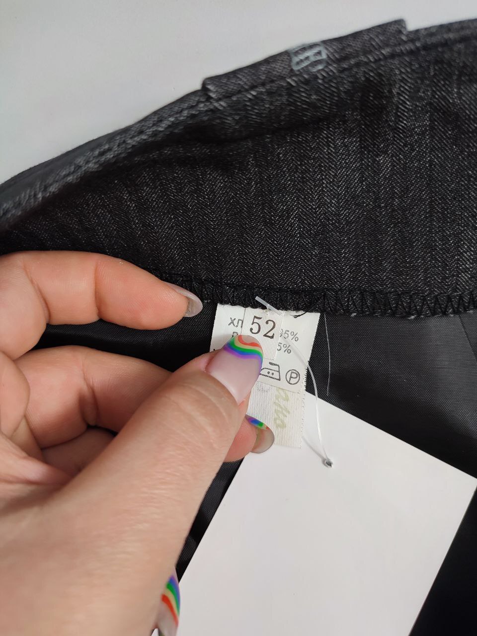 2. Маркировка: визуально 52 размер, всегда ориентируйтесь по замерам, чтобы не ошибиться с выбором размера измеряйте похожие вещи. Листайте фото с замерами вправо.