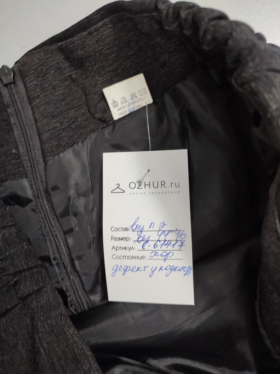 2. Маркировка: Визуально 44-46 размер. Всегда ориентируйтесь по замерам. Чтобы не ошибиться с выбором размера - измеряйте похожие вещи. Листайте фото с замерами вправо.