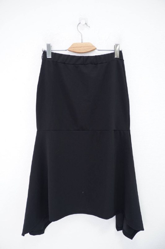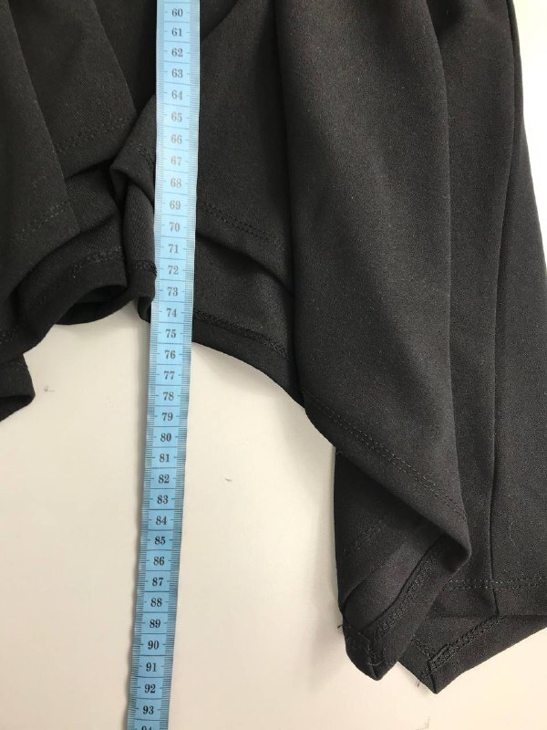 Юбка неоднородной длины из искусственного материала в черном цвете без рисунков. Листайте фото с замерами вправо.