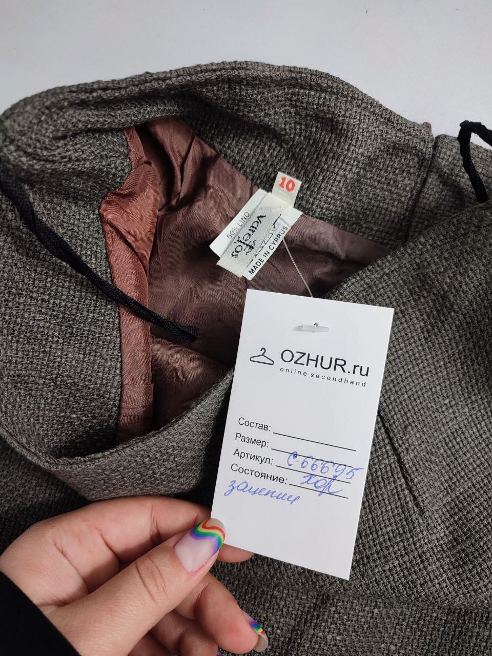 2. Маркировка: 10, визуально 44 размер. Всегда ориентируйтесь по замерам. Чтобы не ошибиться с выбором размера - измеряйте похожие вещи. Листайте фото с замерами вправо.