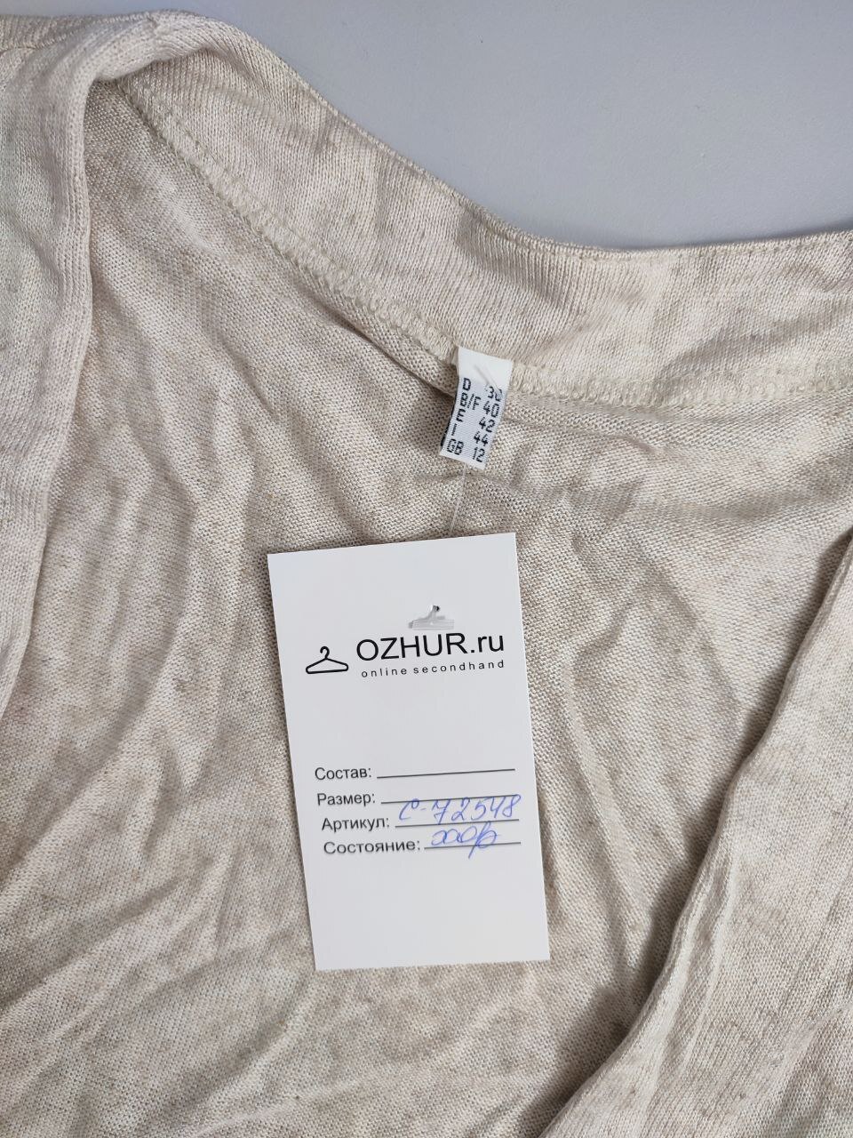 2. Маркировка: 40, визуально 46 размер. Всегда ориентируйтесь по замерам. Чтобы не ошибиться с выбором размера - измеряйте похожие вещи. Листайте фото с замерами вправо.
